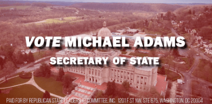 NARRATOR: “Michael Adams promised to make Kentucky’s elections safer, more transparent, and more secure. And as our Secretary of State, Michael Adams delivered. Adams enacted Kentucky’s first voter ID laws, enhanced signature verification, expanded post election audits, and increased access to early voting. Because Michael believes it should be easy to vote, but hard to cheat. On November 7th, vote for a candidate that delivers on their promises. Vote Michael Adams for Secretary of State.