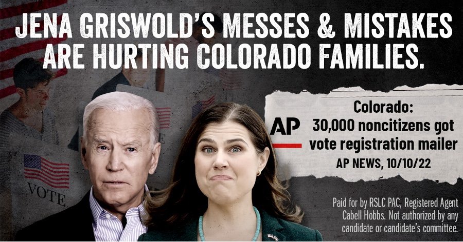 “Jena Griswold has proven that she’s too partisan and too incompetent to be trusted as the Centennial State’s top election official,” said RSLC PAC President Dee Duncan. “Griswold stands with radical liberal efforts that encourage noncitizens to vote in our elections because she believes her job is to help Democrats win elections at all costs. Coloradans have had enough of Griswold’s failures and are turning to Pam Anderson because they know she can be trusted to conduct free and fair elections for Coloradans and make it easier for citizens of the Centennial State to vote and harder to cheat.”